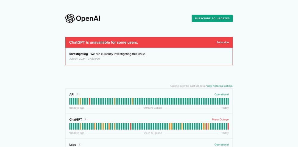 ChatGPT חווה הפסקה גדולה מאז יום שלישי, 4 ביוני, שנמשך למעלה מ-3 שעות. נראה שהבעיה משפיעה בעיקר על אפליקציית ChatGPT בכל הפלטפורמות. משתמשים רבים נתקלים ב-500 שגיאות שרת כאשר האפליקציה מנסה לאחזר מידע על דגמים זמינים ולהתחבר לתכונות צ'אט קולי (מה שקורה במהלך השקת האפליקציה לצ'אט חדש).