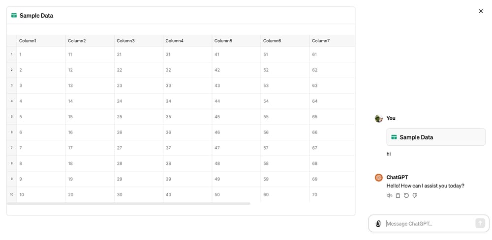 - לאחר ההפצה, פתח את גיליון הנתונים שלך ב-ChatGPT, שם אתה אמור לראות את תצוגת טבלת הנתונים המשופרת החדשה.