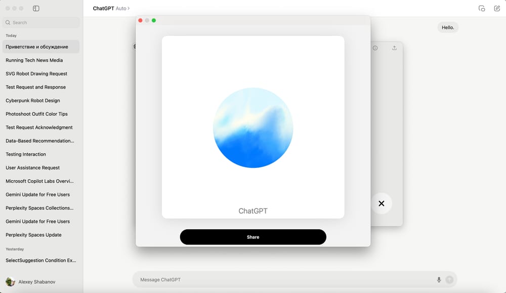שובר 🚨: ChatGPT עובד על תכונת שיתוף קליפים קוליים עבור MacOS (וכנראה שהיא תהיה זמינה גם ב-iOS). כפתור השיתוף החדש פותח חלון קופץ, הכולל את תחום OpenAI וכפתור שיתוף. pic.twitter.com/rVoBXPaUh6