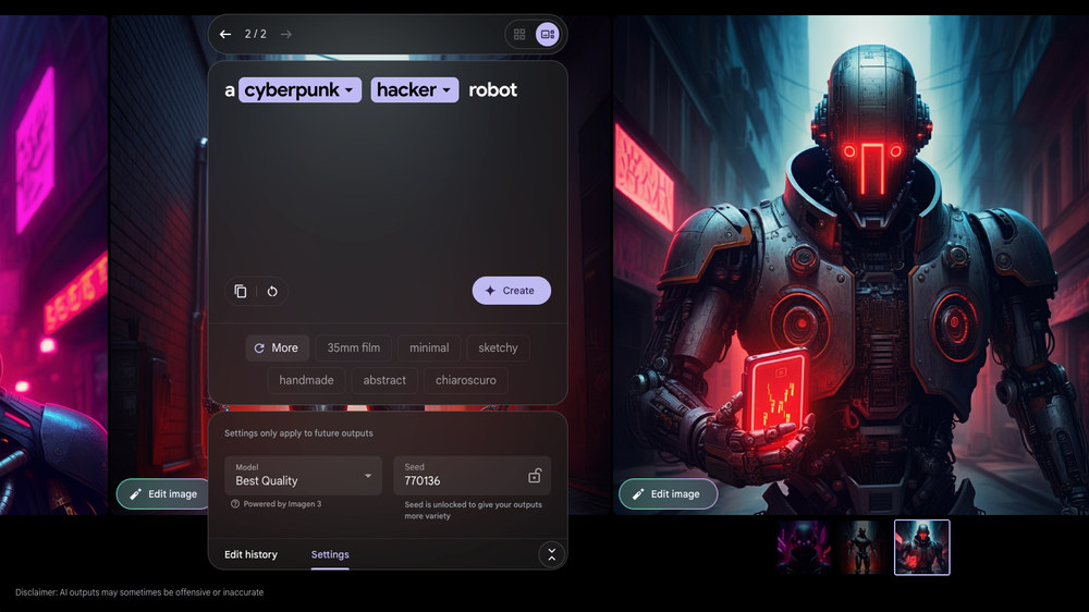 Imagen 3 משולב ב-ImageFX, חלק ממטבח AI Test Kitchen של גוגל, המאפשר למשתמשים ליצור תמונות על סמך הנחיות טקסטואליות.