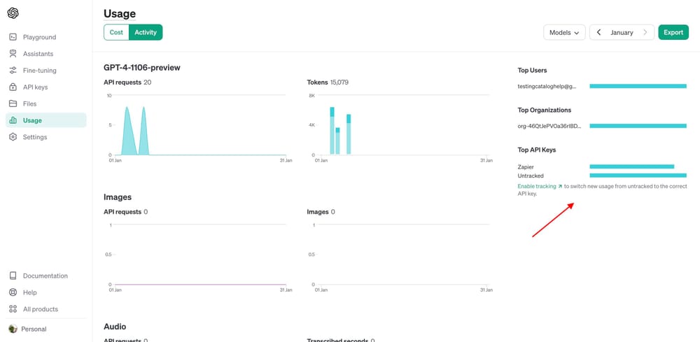 כיצד להפעיל מעקב אחר שימוש עבור מפתחות API של ChatGPT