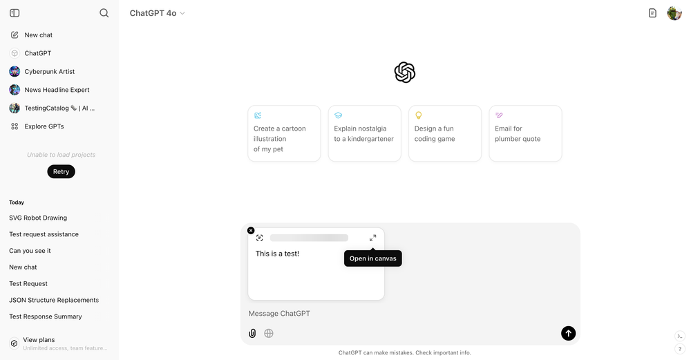 OpenAI בוחנת את היכולת ליצור קנבסים ישירות מאזור הפקודה. ניסוי שנערך לאחרונה מציג כפתור חדש המאפשר למשתמשים לפתוח תוכן מודבק מאזור ההנחיות לתצוגת הקנבס. ניתן להרחיב את התצוגה הזו למסך מלא בגיליון הצד, מה שמאפשר למשתמשים להתחיל מיד לעבוד עם התוכן המסופק מבלי לחכות ש-ChatGPT יעבד אותו תחילה.