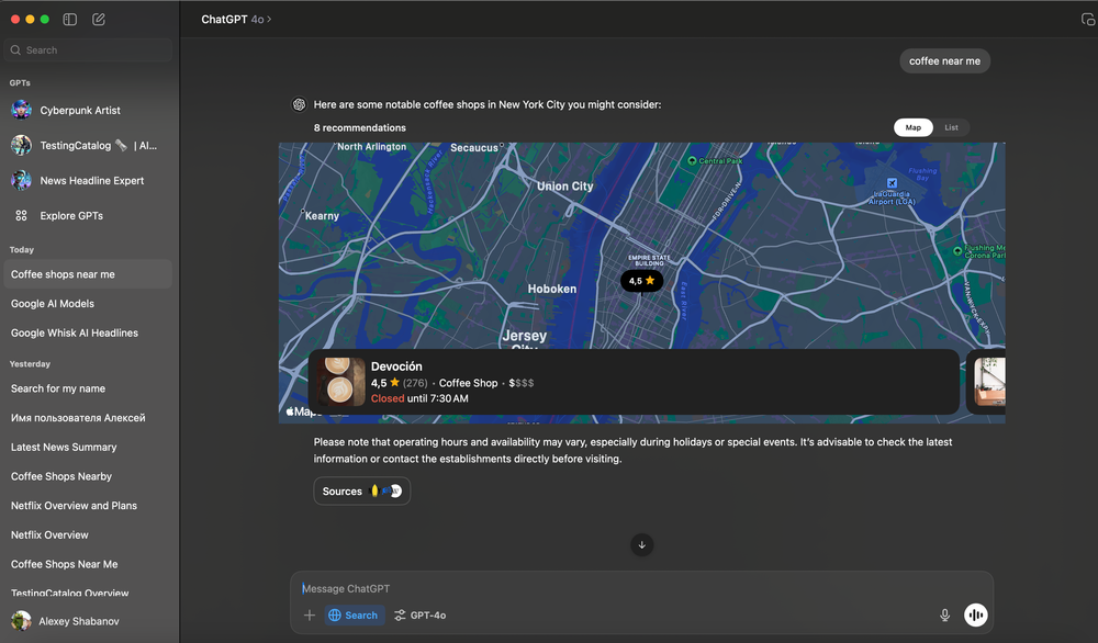 התכונה החדשה: עדכון ChatGPT Search and Maps Integration